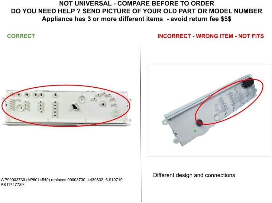GLOB PRO SOLUTIONS 1154875 CKD3383 Control Board Glob Pro Solutions register brand in process-Check options categorized by measures o connectors, this product have different numbers of parts . ***If you need faster see other options in check out,The part has 20 different part numbers like: 1154875 if you have old serial number, the new part has new number and looks different of your old part but the new part is perfect fit for old and new serials LEQ1442ES0, LEQ1442ES1, LEQ1452KS0,FEFB9100ES0,FEQ1442ES0,FEQ1442ES1, LGQ1442ES1, FGQB4000FS2, BEQ1442CES0, BEQ1442CES1, CDG4000FW1, CDG4000HW1, FGQ1442ES0, FGQ1442ES1, FGQ1442ES2, FGQ1442ES3, FGQ1442FE0,FGQ1442FE2, FGQ1452HE0, FGQ1452HE1, FGQ1452HS0, FGQ1452HS1, FGQB4000FS1, and more.*****This part is perfect fit, you don’t need additional wire cables, terminal or glue, easy job 15 minutes average time, NON OEM Universal Replacement Part with OEM standards, replacement for and compatible with several brands ...