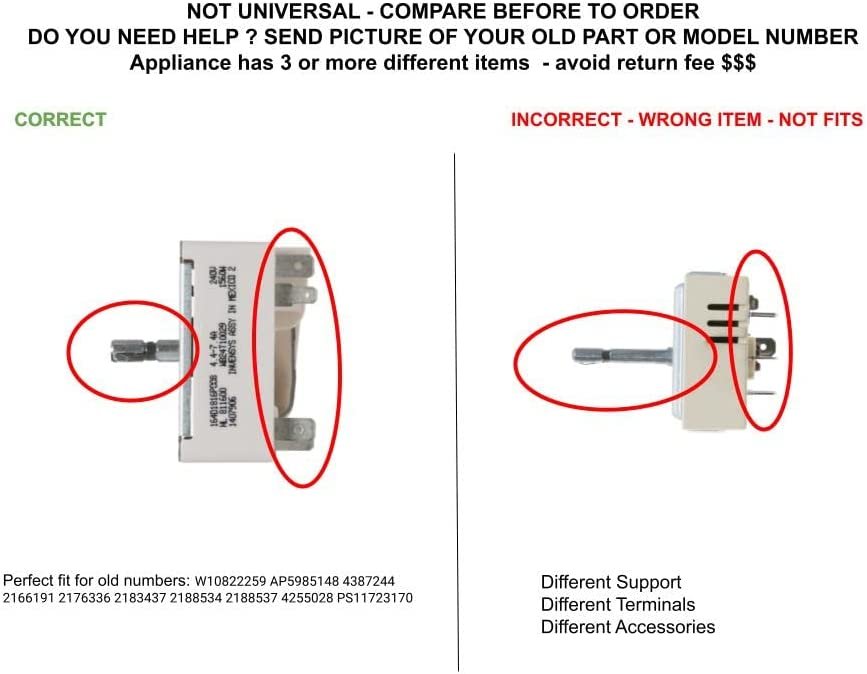 GLOB PRO SOLUTIONS 769696 CKD3570 Range Surface Burner Control Switch Glob Pro Solutions register brand in process-Check options categorized by measures o connectors, this product have different numbers of parts . ***If you need faster see other options in check out,The part has 20 different part numbers like: 769696 if you have old serial number, the new part has new number and looks different of your old part but the new part is perfect fit for old and new serials RB787WC2WW, JBS27BC2WH, RB757BH1WH,ECBP70SK1SS,ECBP70SK2SS,ECBP70SK3SS, ECBP70SK4SS, ECBP70WK1WW, ECBP70WK2WW, ECBP70WK3WW, ECBP82BJ1BB, ECBP82BJ2BB, ECBP82BJ3BB, ECBP82SJ1SS, ECBP82SJ2SS, ECBP82SJ3SS, ECBP82SK1SS,ECBP82SK2SS, ECBP82SL1SS, ECBP82SL2SS, ECBP82WJ1WW, ECBP82WJ2WW, ECBP82WK1WW, and more.*****This part is perfect fit, you don’t need additional wire cables, terminal or glue, easy job 15 minutes average time, NON OEM Universal Replacement Part with OEM standards, replacement for and compatible with several brands ...
