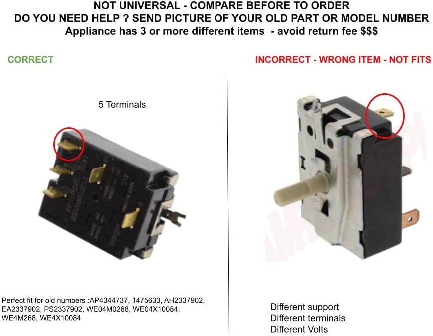 98.48 GLOB PRO SOLUTIONS WE4M407 CKD3191 Temperature Sensor Switch Glob Pro Solutions register brand in process-Check options categorized by measures o connectors, this product have different numbers of parts . ***If you need faster see other options in check out,The part has 20 different part numbers like: WE4M407 if you have old serial number, the new part has new number and looks different of your old part but the new part is perfect fit for old and new serials GTDP180ED0WW, GTDP200EF1WS, GTDP220EF1WW,GTDP180ED1WW,GLDP280ED0WS,GTDP301EL1WS, GTDX180ED0WW, GTDX180ED1WW, GTDX180ED3WW, GTDX180ED4WW, GTDX180ED6WW, HTDP120ED0WW, GTDX200EM0WW, GTDX200EM2WW, GIDP400JD0WW, GIDP400JD2WW, GIDP400JD3WW,GIDP400JD4WW, GTDX180ED2WW, GTDX200EM1WW, GLDP280ED1WS, GTDP350EM1WS, HTDP120ED2WW, and more.*****This part is perfect fit, you don’t need additional wire cables, terminal or glue, easy job 15 minutes average time, NON OEM Universal Replacement Part with OEM standards, replacement for and compatible with several brands ...